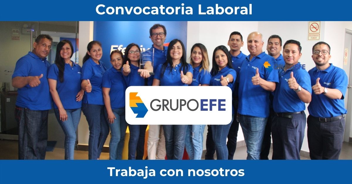 “ En el Grupo EFE creemos firmemente en la igualdad de oportunidades para todos los géneros, promovemos la diversidad generacional, de origen étnico, de nacionalidad y son bienvenidas las personas con condiciones diferentes, de acuerdo a lo establecido en la Ley N° 29973. Agradecemos al postulante con discapacidad que nos informe si requiere algún tipo de ajuste razonable para su desempeño dentro del proceso de selección.”